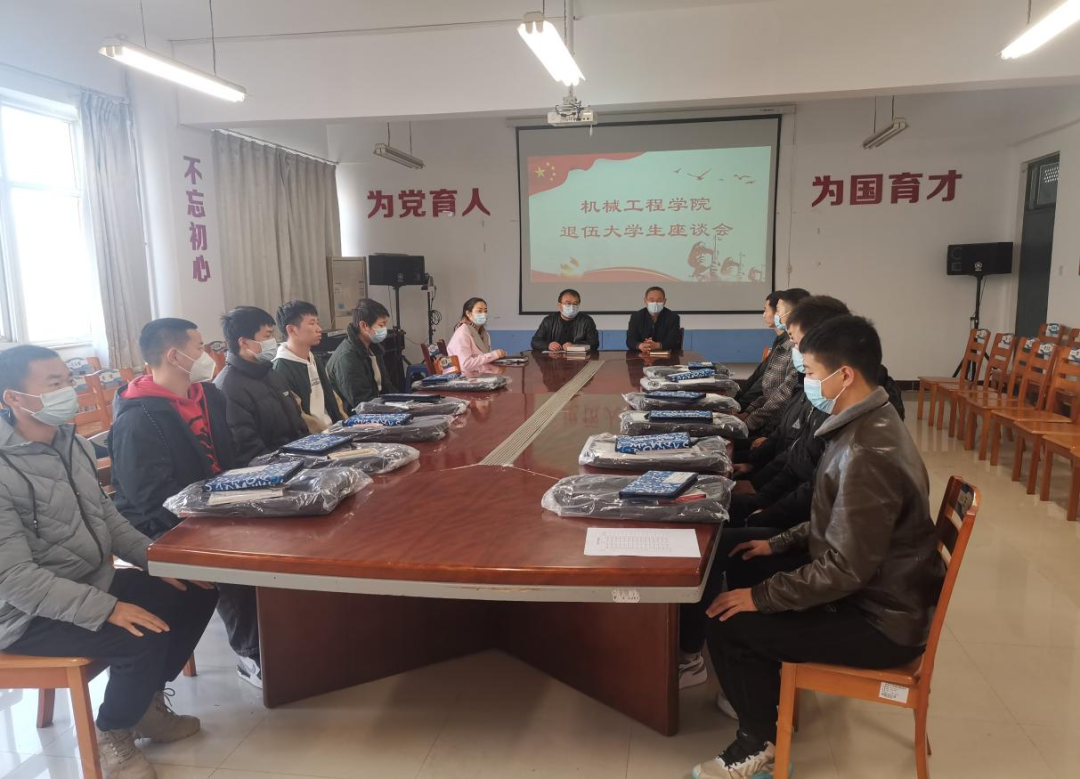 会后,学院领导班子成员为退伍大学生送上了书包、笔记本等学习用品。
