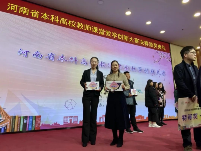 2020年河南省教育厅举办的第二届“本科高校青年教师课堂教学创新大赛”,李菲荣获工科组特等奖,王倩获一等奖,廉蒙蒙获二等奖,王立新获教授组二等奖。