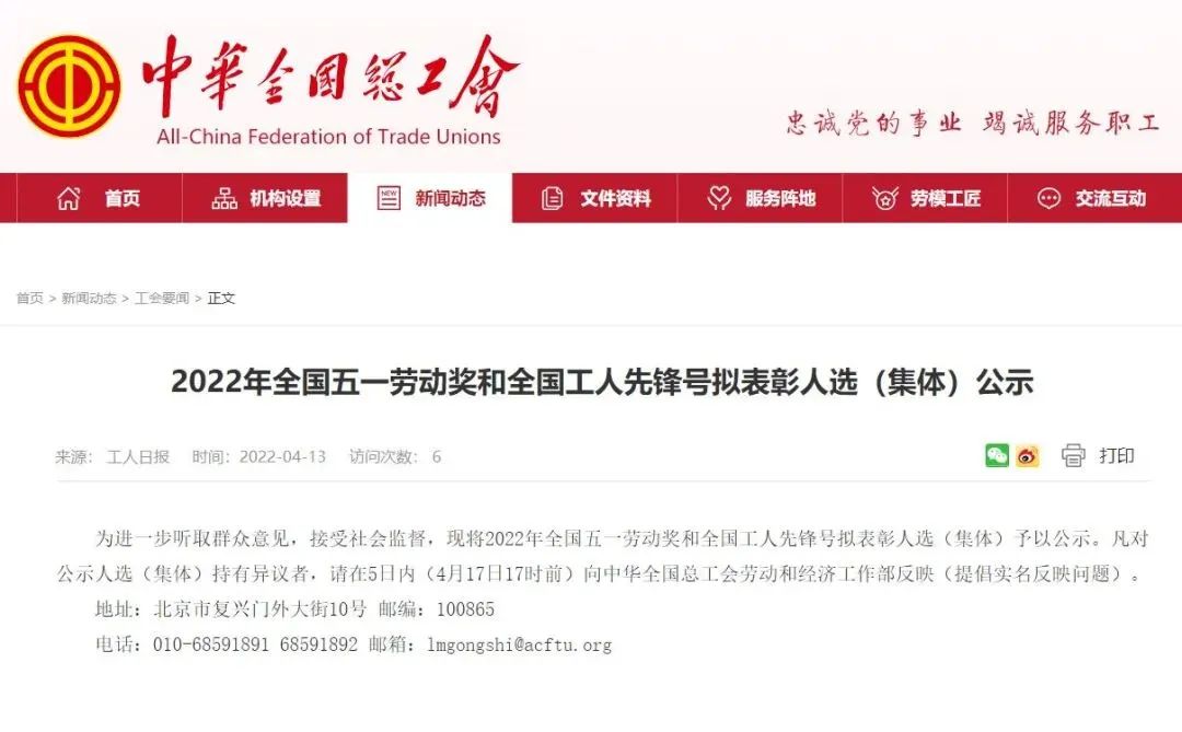 4月13日,中华全国总工会发布了2022年全国五一劳动奖和全国工人先锋号拟表彰人选(集体)公示名单。其中,我院教师、副教授翟雁入选。